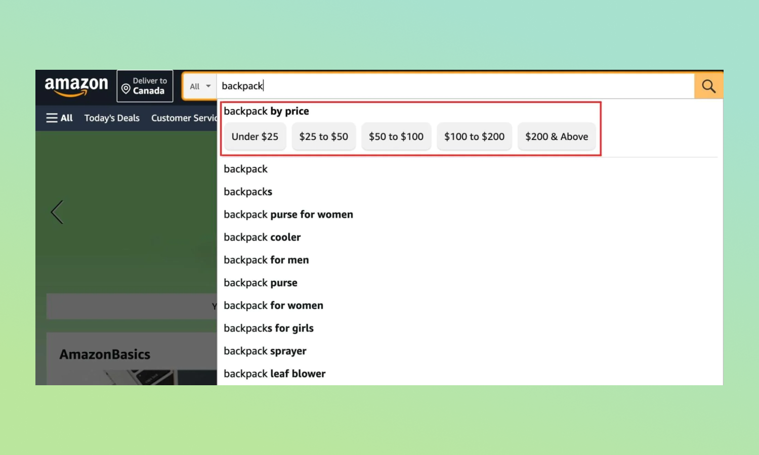 You can complete a similar process on Amazon. The great thing about Amazon suggestions is that, unlike Google, they’re product-focused and can include filterable details such as price.