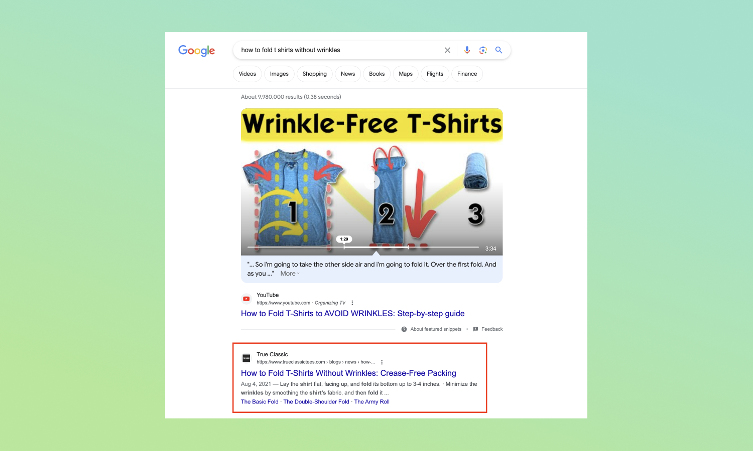 The tasks involved in ecommerce SEO marketing are varied. They include creating content that satisfies keyword queries typed into search engines. For example, an ecommerce store like True Classic, which sells t-shirts, can improve its website SEO by creating content on “how to fold t-shirts without wrinkles.”